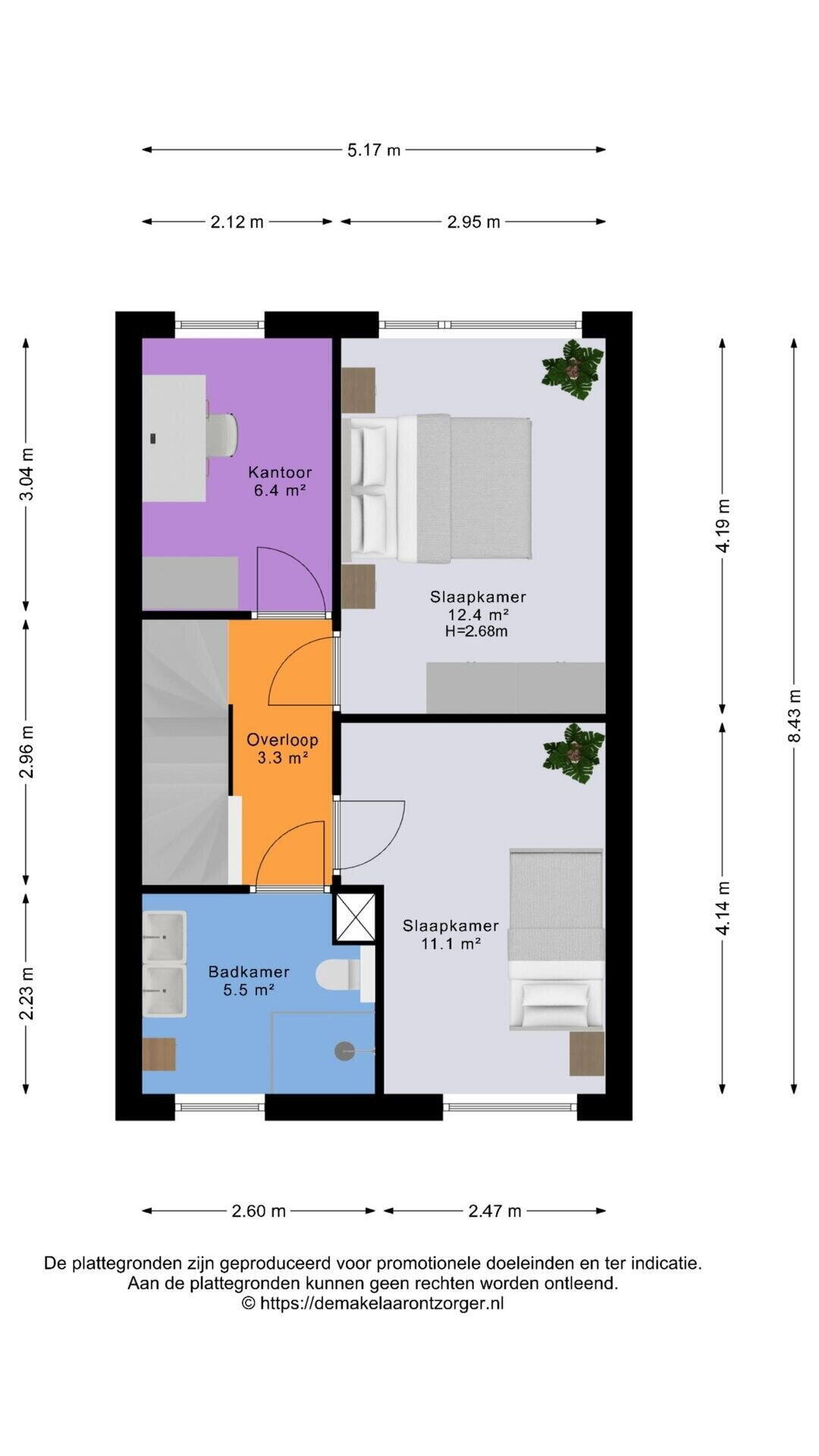 3 Slaapkamers (ca. 12 m², ca. 11 m² en ca. 6 m²);