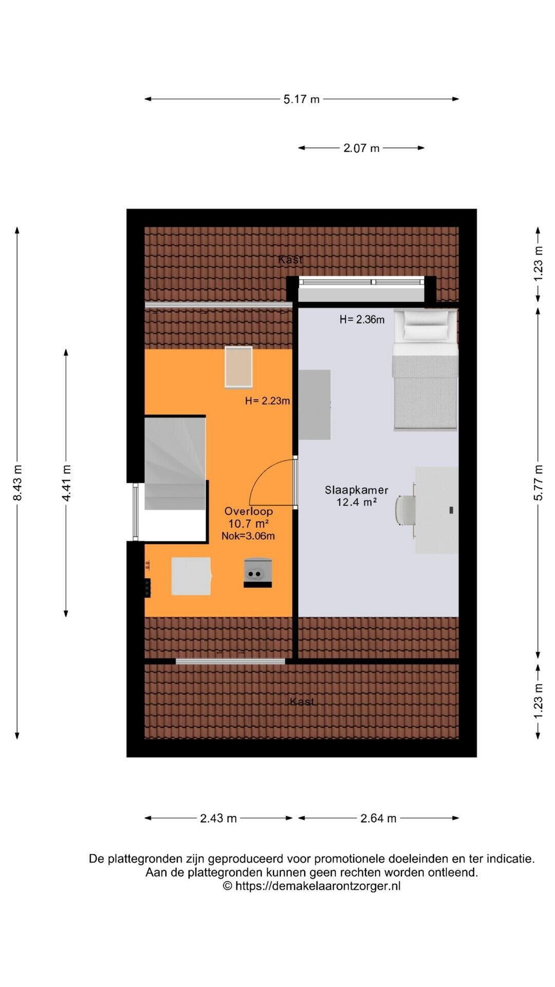 Slaapkamer met dakkapel (ca. 12 m²).